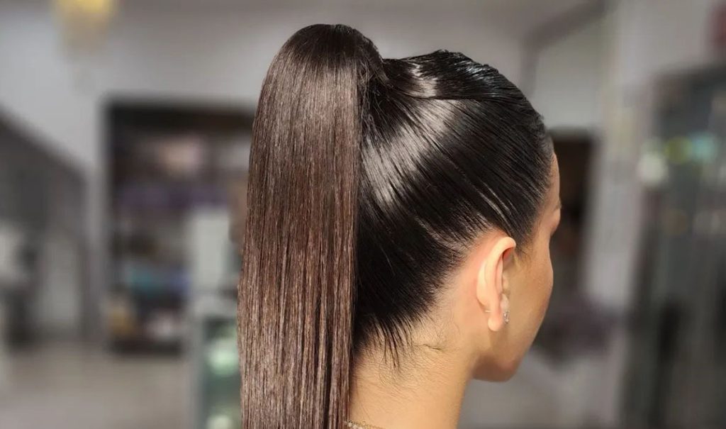 - Slicked-Back Ponytail: Lean into the sleek look! Use the natural oils to your advantage with a tidy high ponytail and a bit of gel for polish.
